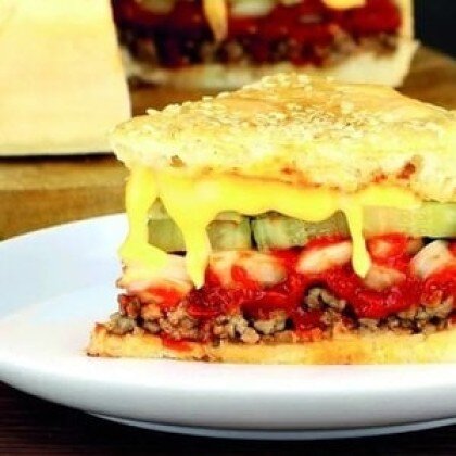 Болгарский пирог с грудкой, творожным сыром и перцем